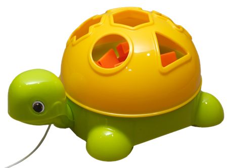 - Каталка с верёвочкой развивает координацию движений и моторику — малыш учится направлять черепашку, продумывая маршрут.