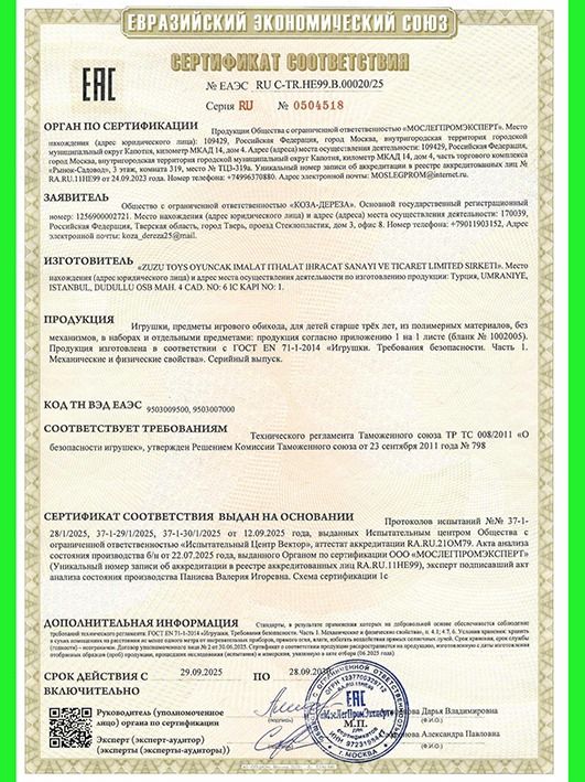 · Проверенное качество. Качество наших игрушек подтверждено швейцарскими и российскими сертификатами. Вы можете быть уверены: каждая деталь соответствует строгим стандартам.
