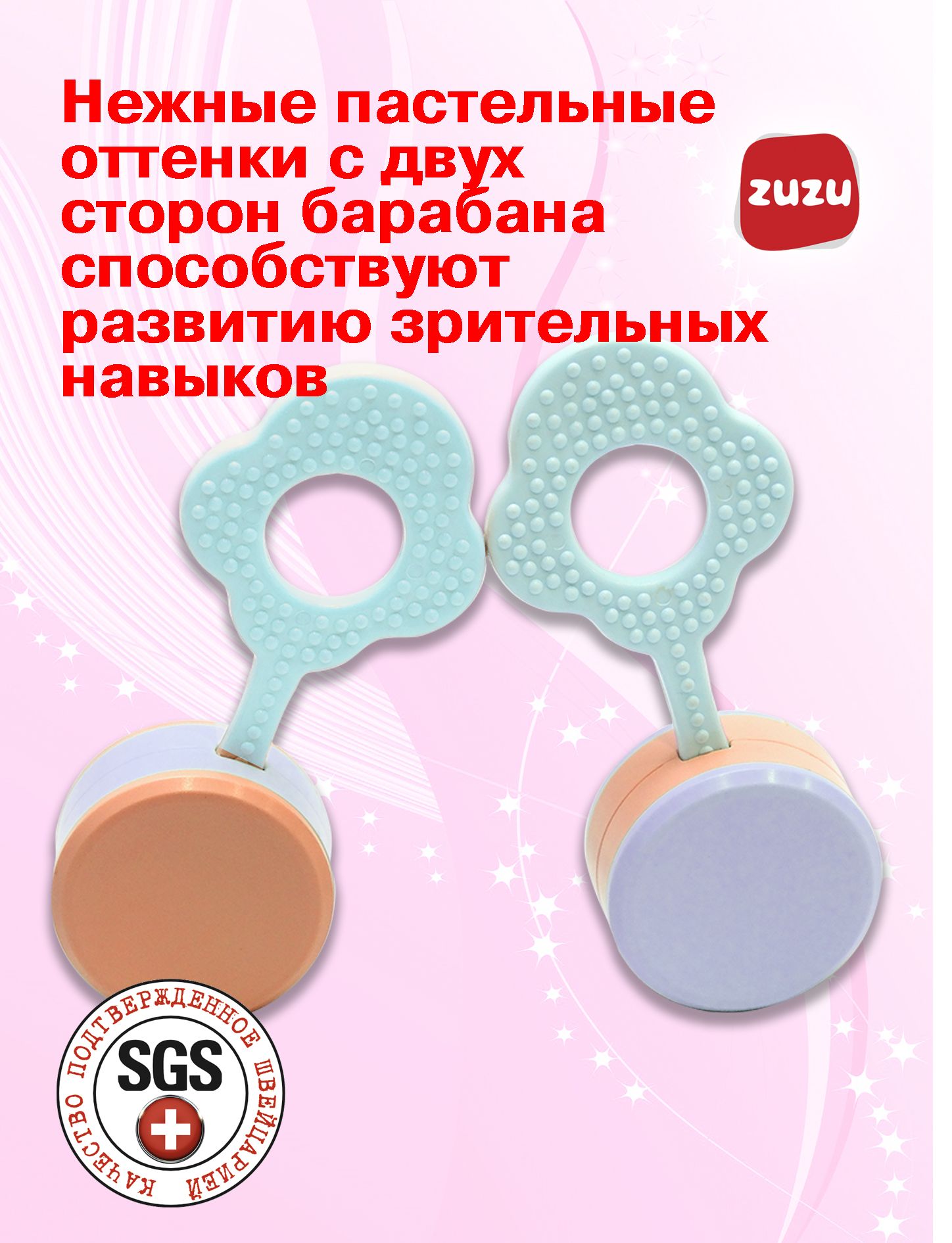 Ищете игрушку, которая не только развлечёт вашего кроху, но и поспособствует его развитию? Представляем вам очаровательную погремушку «Барабан» от Турецкого производителя ZUZU TOYS — идеальный музыкальный аксессуар для малышей!