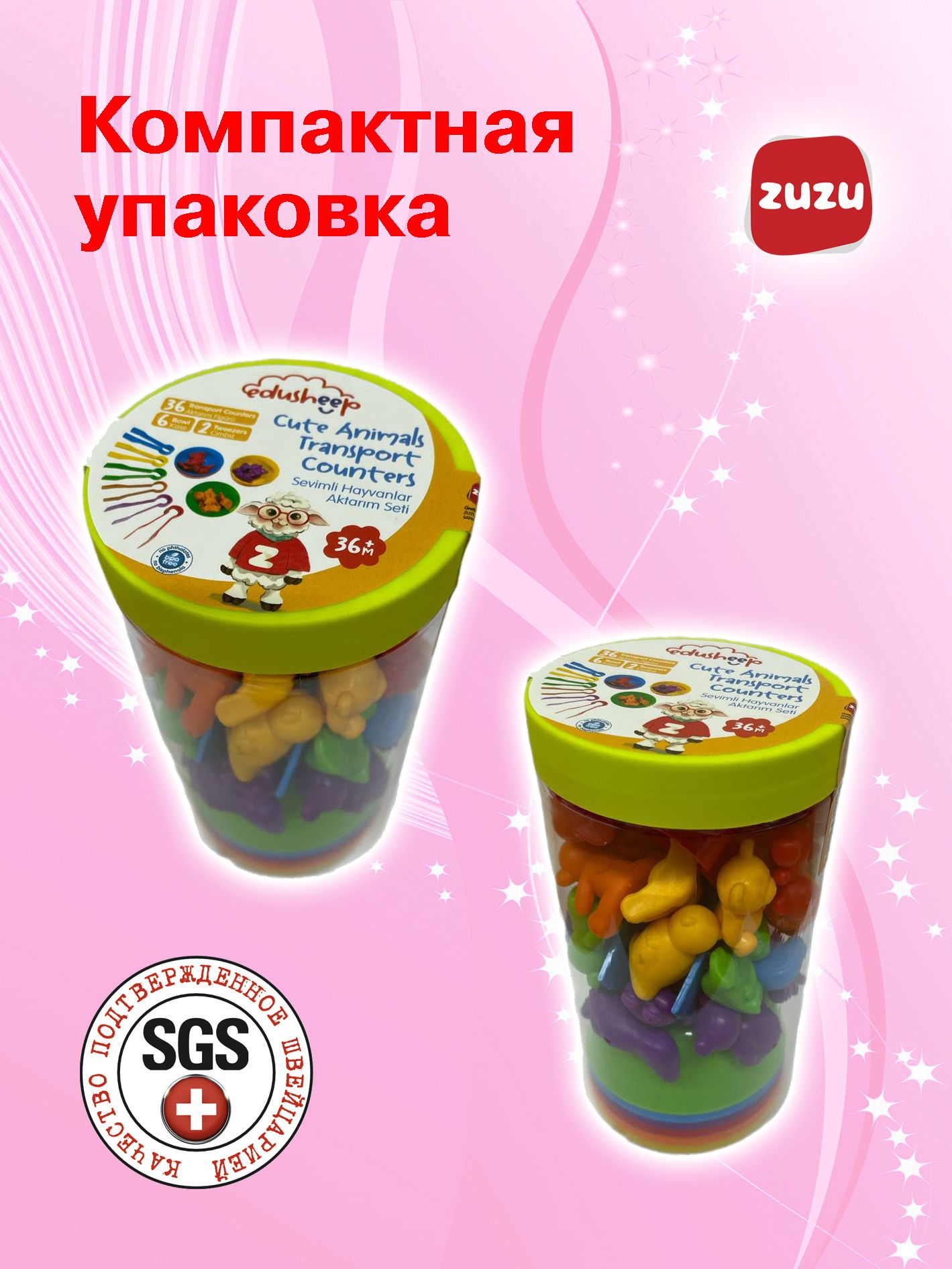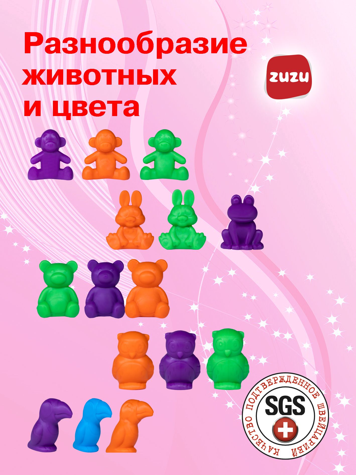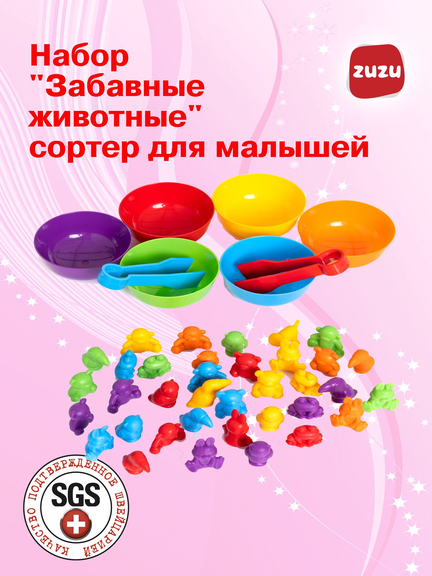 - Безупречное качество сортера "Забавные животные" — забота о безопасности. Используя квалифицированную рабочую силу и накопленный опыт в промышленности и производстве с 1978 года, ZUZU TOYS создаёт игрушки, которые отвечают самым строгим требованиям здоровья. Качество подтверждено Швейцарскими и Российскими сертификатами. Ваш ребёнок в безопасности — мы используем только высококачественные пластмассы.